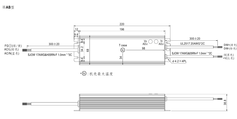 僅A/AB型可調(通過內部電位器)33 ~ 40V 38 ~ 46V |