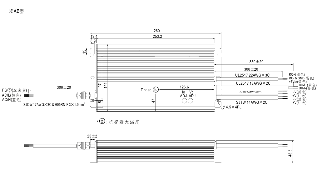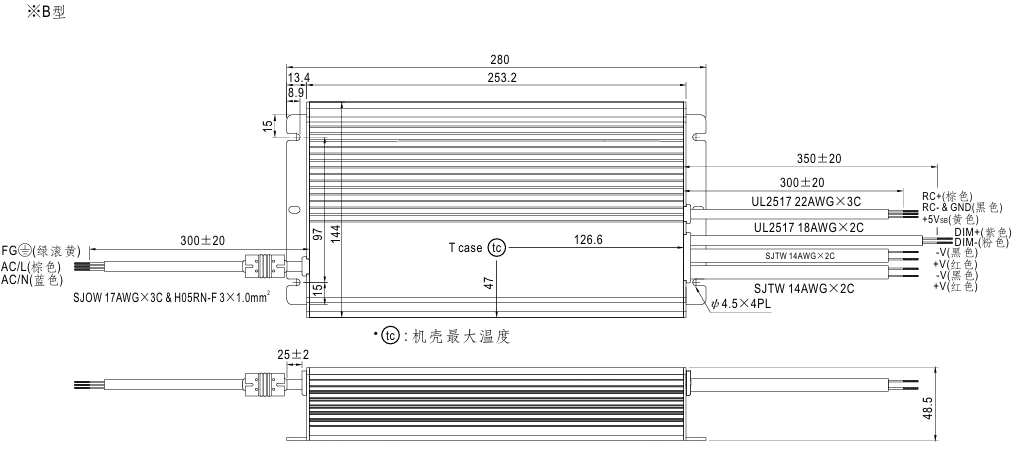 功能可選:輸出內部電位器調整三合一調光 (dim-to-off)