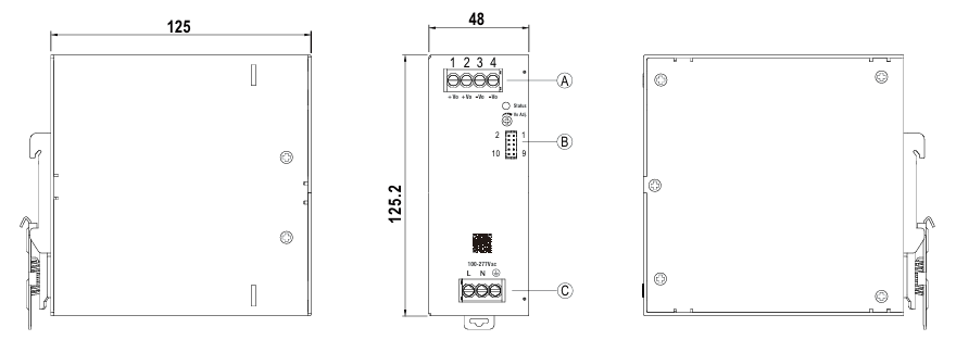 可安裝在 TS-35/7.5 或 15 DIN 導軌上