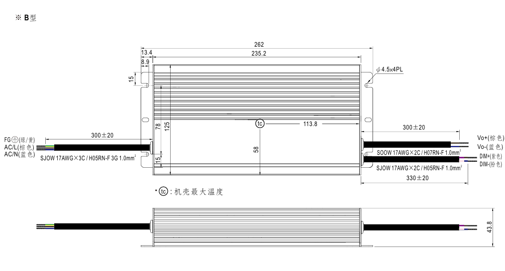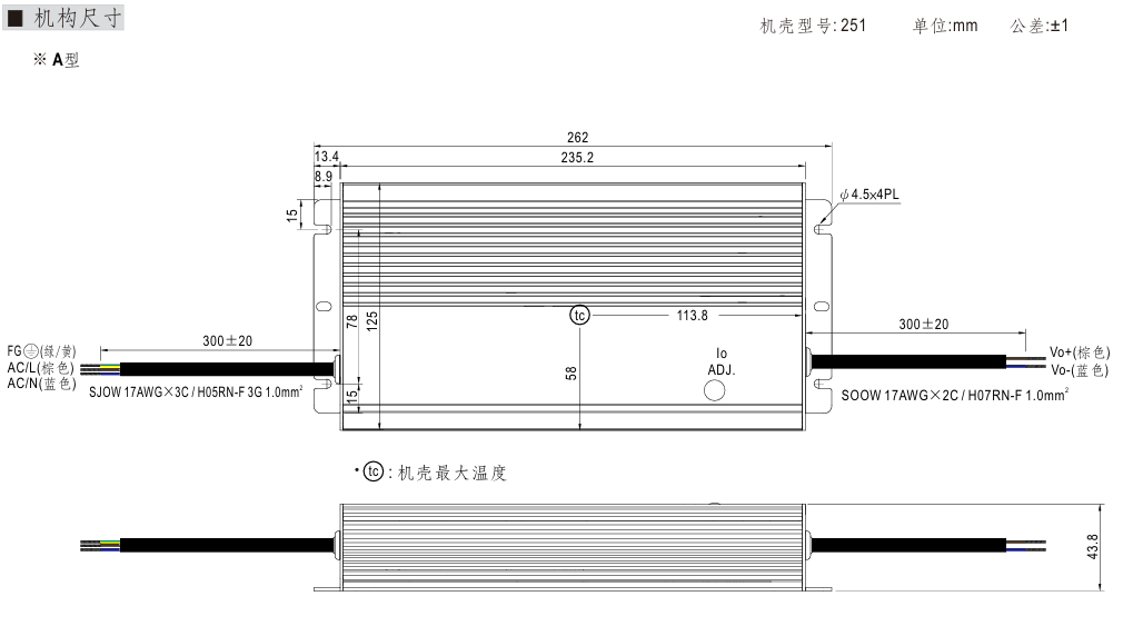 262*125*43.8mm (L*W*H) |