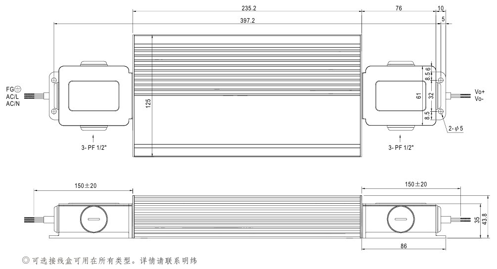 功能可選:輸出內部電位器調整;三合一調光(dim-to-off,獨