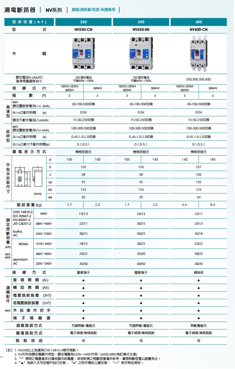 士林電機(Shinlin) 漏電斷路器Earth Leakage Circuit Breaker NV 系列