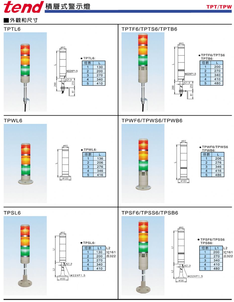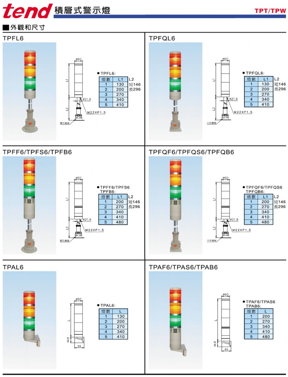 天得(Tend) TOWER LIGHT 積層式警示燈 TPT/TPW
